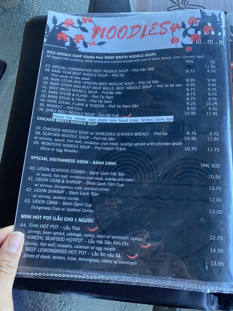 Rice noodles medium rare steak, brisket, meatballs, flank, tendon, & tripe for a succulently delicious soup prepared with fresh ingredients.